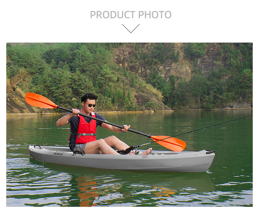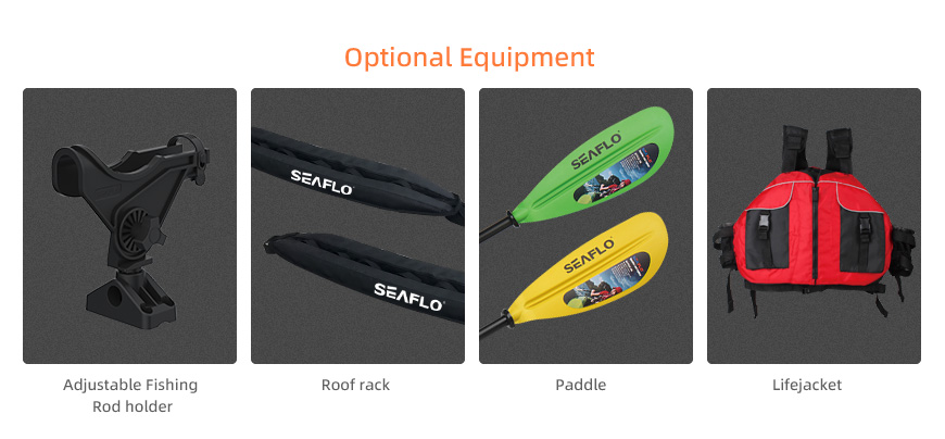 The Seaflo fishing kayak is durable and designed to accommodate you as your comfortable fishing gear. Sit-on-top style with foldable backrest and especially the foot area design make you feel comfortable either sitting or standing on the boat.2 Flush rod holders, 1 adjustable rod holder, and 2 deck mount mounting brackets make the fishing convenient.