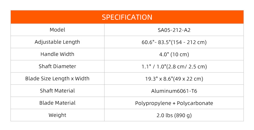 With its Aluminum shaft and fiberglass reinforced polypropylene blades, it is an upgrade which gives an even lighter, stronger and stiffer paddle. It has a great blade shape for straight ahead tracking with a palm style grip for a good fit and controlled strokes. The quick adjustable length fits any sized paddles and board, the shortest can be 152cm which fits perfectly with the Adult SUP.