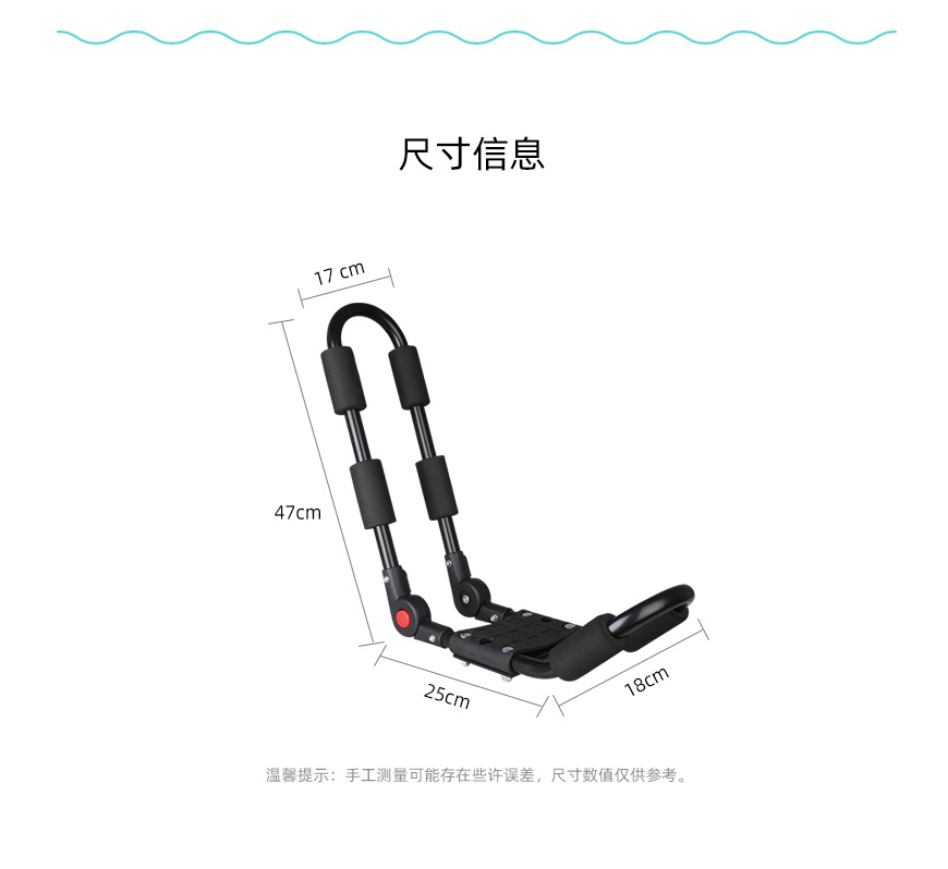 产品参数表型号RRS01长度50 cm宽度26 cm高度18 cm数量1 对净重3.0 kg承重75 kg材质钢