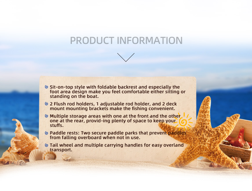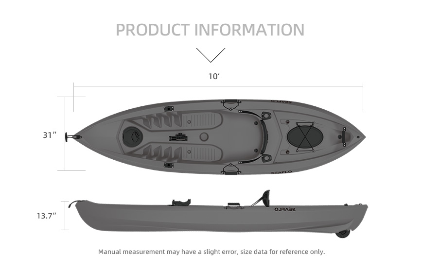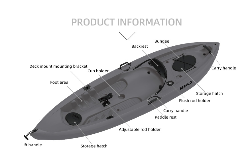 The Seaflo fishing kayak is durable and designed to accommodate you as your comfortable fishing gear. Sit-on-top style with foldable backrest and especially the foot area design make you feel comfortable either sitting or standing on the boat.2 Flush rod holders, 1 adjustable rod holder, and 2 deck mount mounting brackets make the fishing convenient.