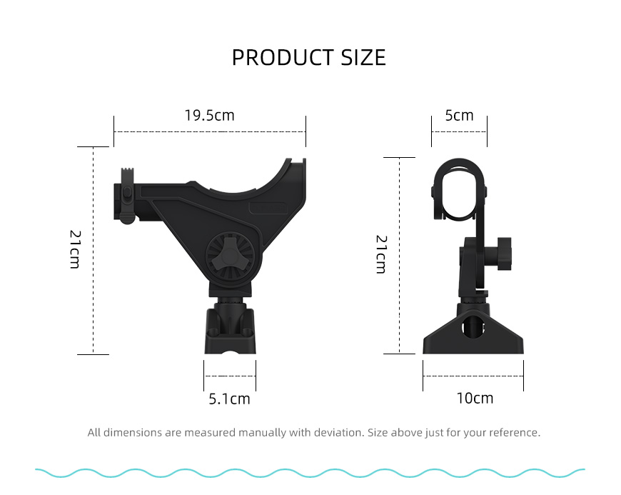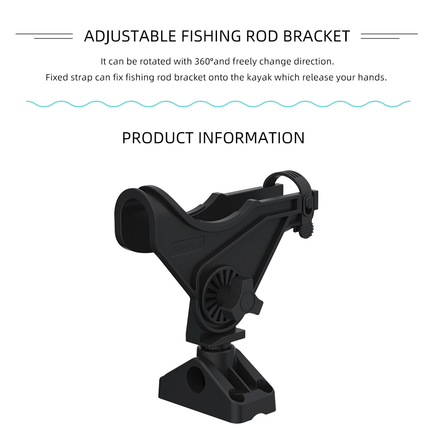 The fishing holder supports 360 degree rotation, free to change direction. It firmly and securely holds most fishing rods with the fixing band. The fishing rod holder relieves the tedious task of holding the rod when fishes are slow to bite.